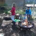Die fertigen Hochbeete wurden anschließend in den hinteren Teil des Schulgartens getragen. Wo vor kurzem noch die Brombeeren das Sagen hatten, ist nun eine freie Fläche entstanden. Dort gruben die Kinder mit großem Einsatz die uralten, riesigen Brombeerwurzeln aus, damit dieser Bereich nicht wieder von den dornigen Ranken überwuchert wird.