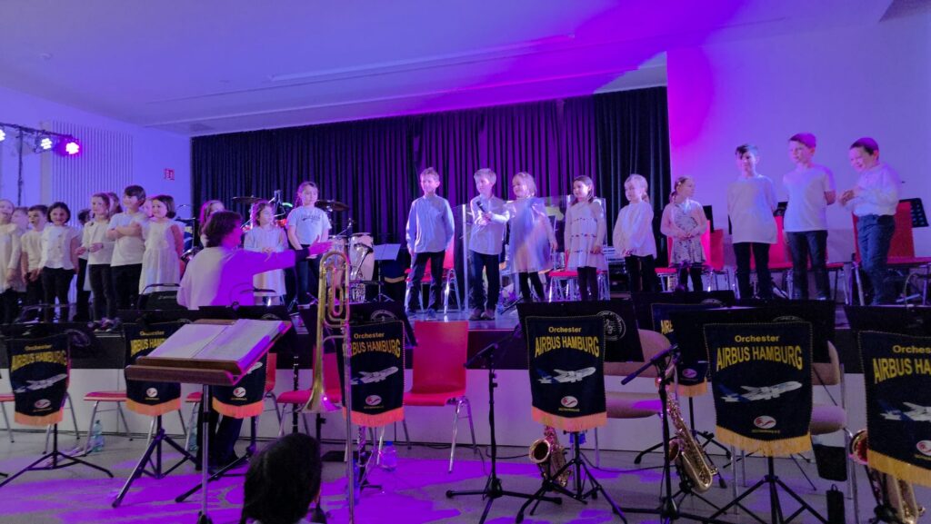 Am gestrigen Sonntag war es endlich so weit: Die Westerschule Finkenwerder öffnete ihre TĂŒren fĂŒr ein ganz besonderes musikalisches Erlebnis – den Auftritt des BlĂ€serorchesters von Airbus Hamburg.