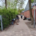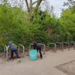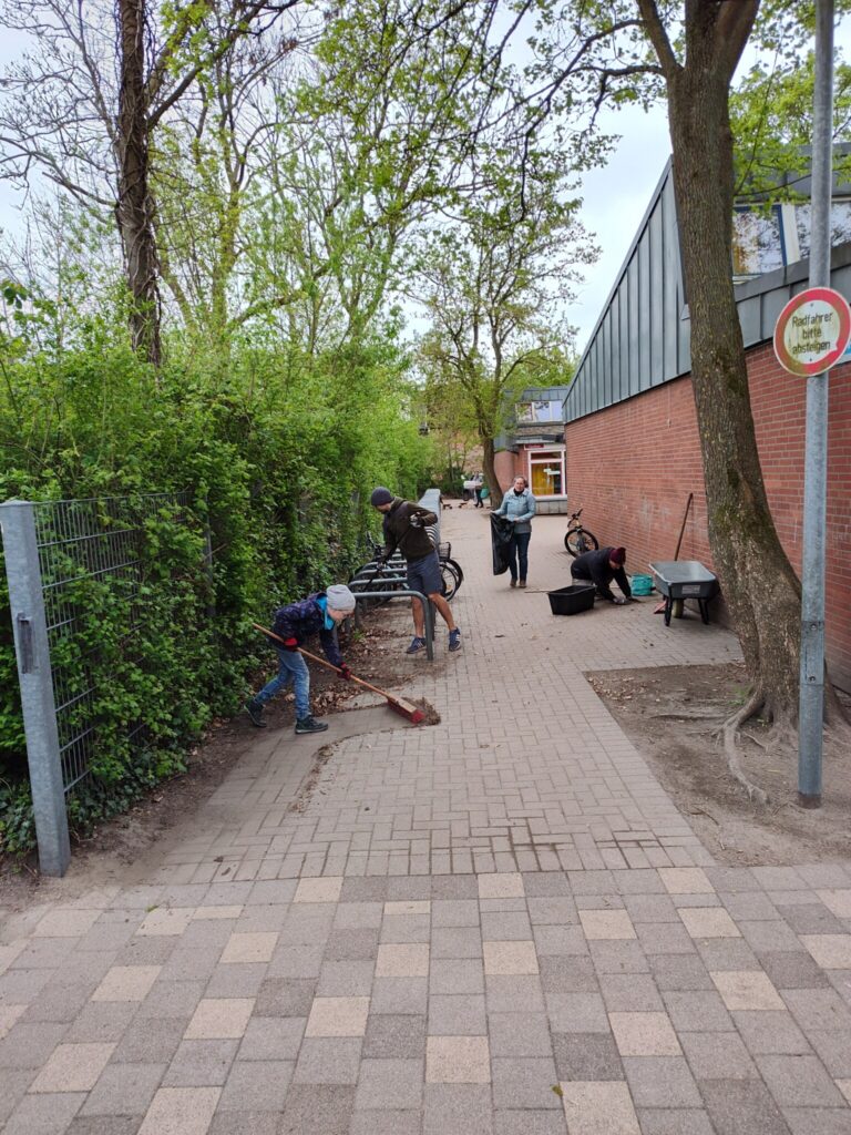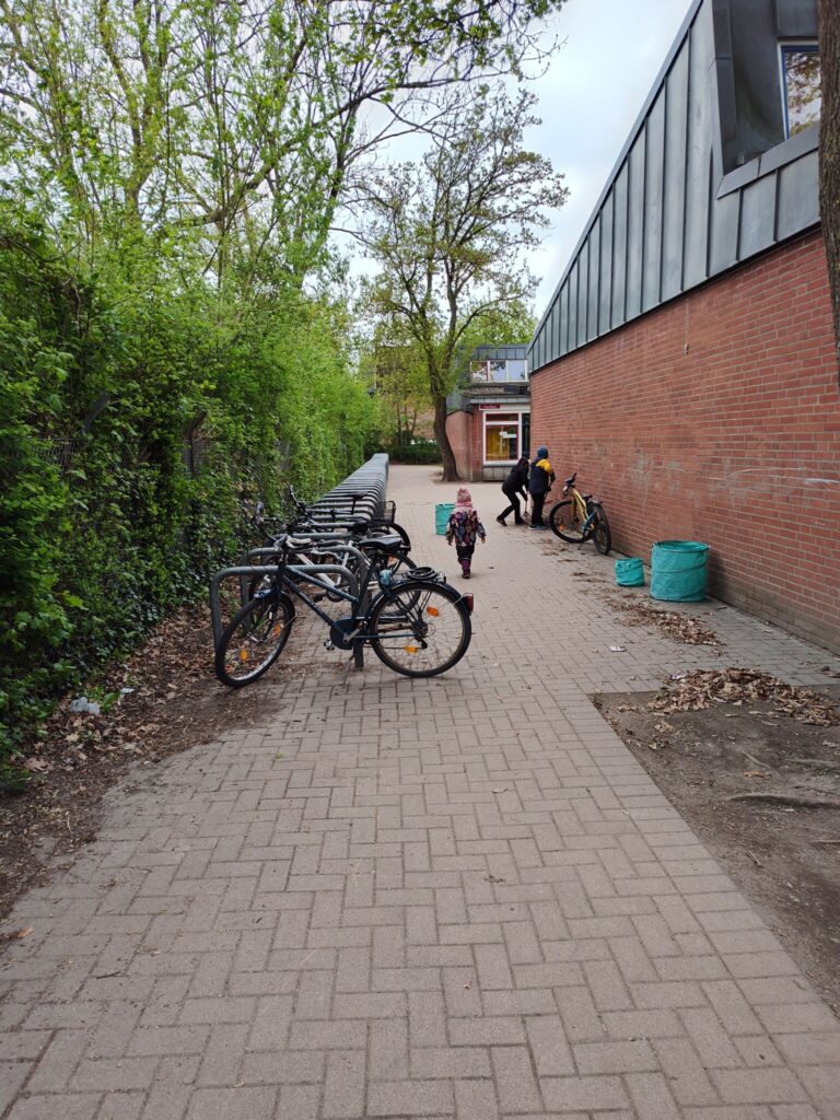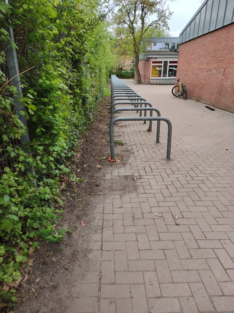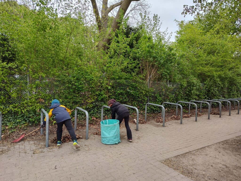 -Rund um die Fahrradständer wurde gründlich aufgeräumt: Berge an Laub wurden entfernt und herumliegender Müll eingesammelt.