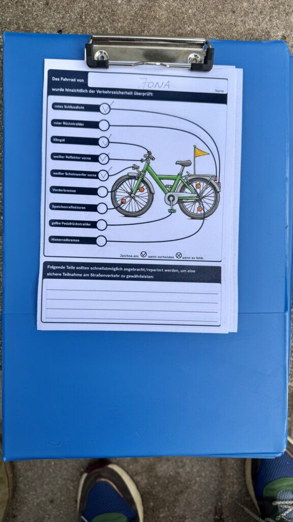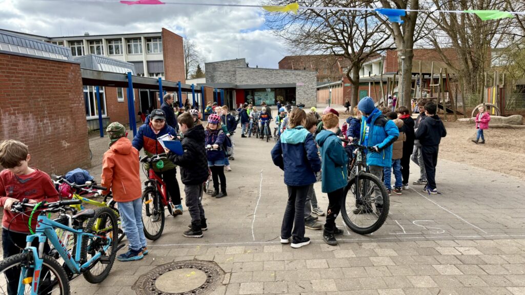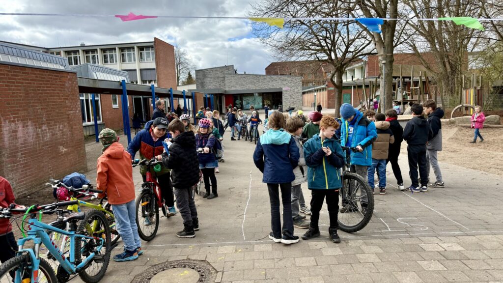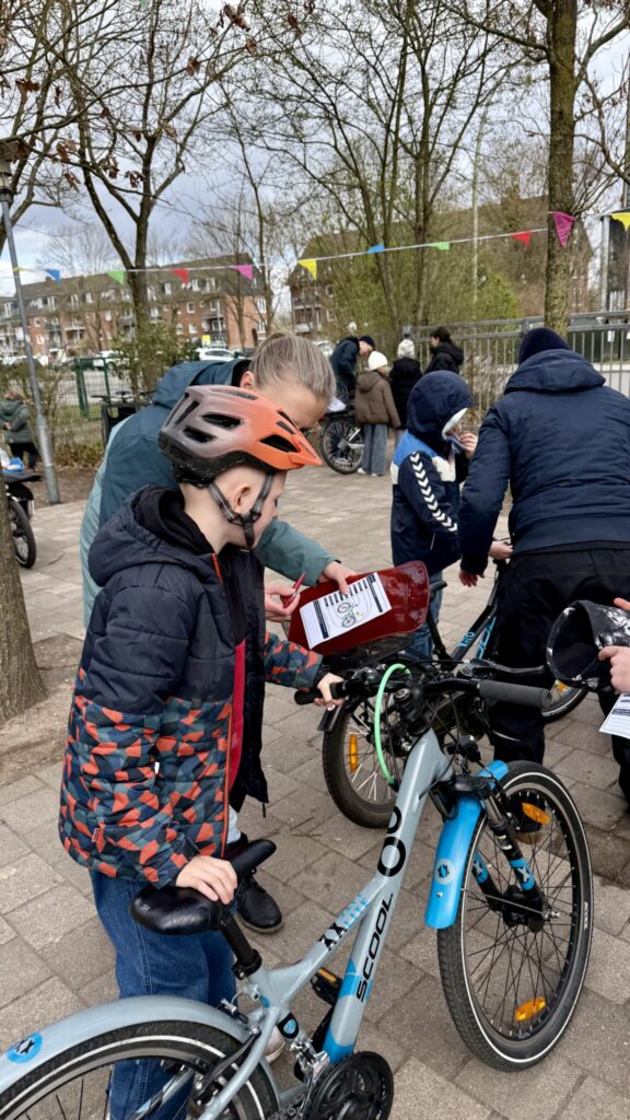Auf dem Schulhof herrschte eine lebendige und gut organisierte Atmosphäre: Viele Kinder mit ihren Rädern, engagierte Helferinnen und Helfer und ein klar strukturierter Ablauf – mit so viel Andrang hatte wohl niemand gerechnet. Die Schlange sprach für sich.