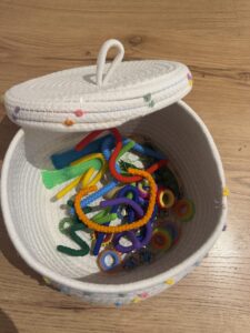 So durfte sich Frau Erhorn über Unterstützung für den sogenannten „Fummelkorb“ freuen. Dieser enthält ausgewählte Fidget Toys, also kleine Materialien, die Kinder dabei unterstützen können, ihre Aufmerksamkeit besser zu steuern. Besonders Schülerinnen und Schüler mit einem erhöhten Bewegungsdrang profitieren davon: Sie erhalten die Möglichkeit, überschüssige Energie abzubauen und gleichzeitig konzentriert am Unterricht teilzunehmen. Richtig eingesetzt fördern diese Hilfsmittel ruhiges Arbeiten und eine positive Lernatmosphäre.